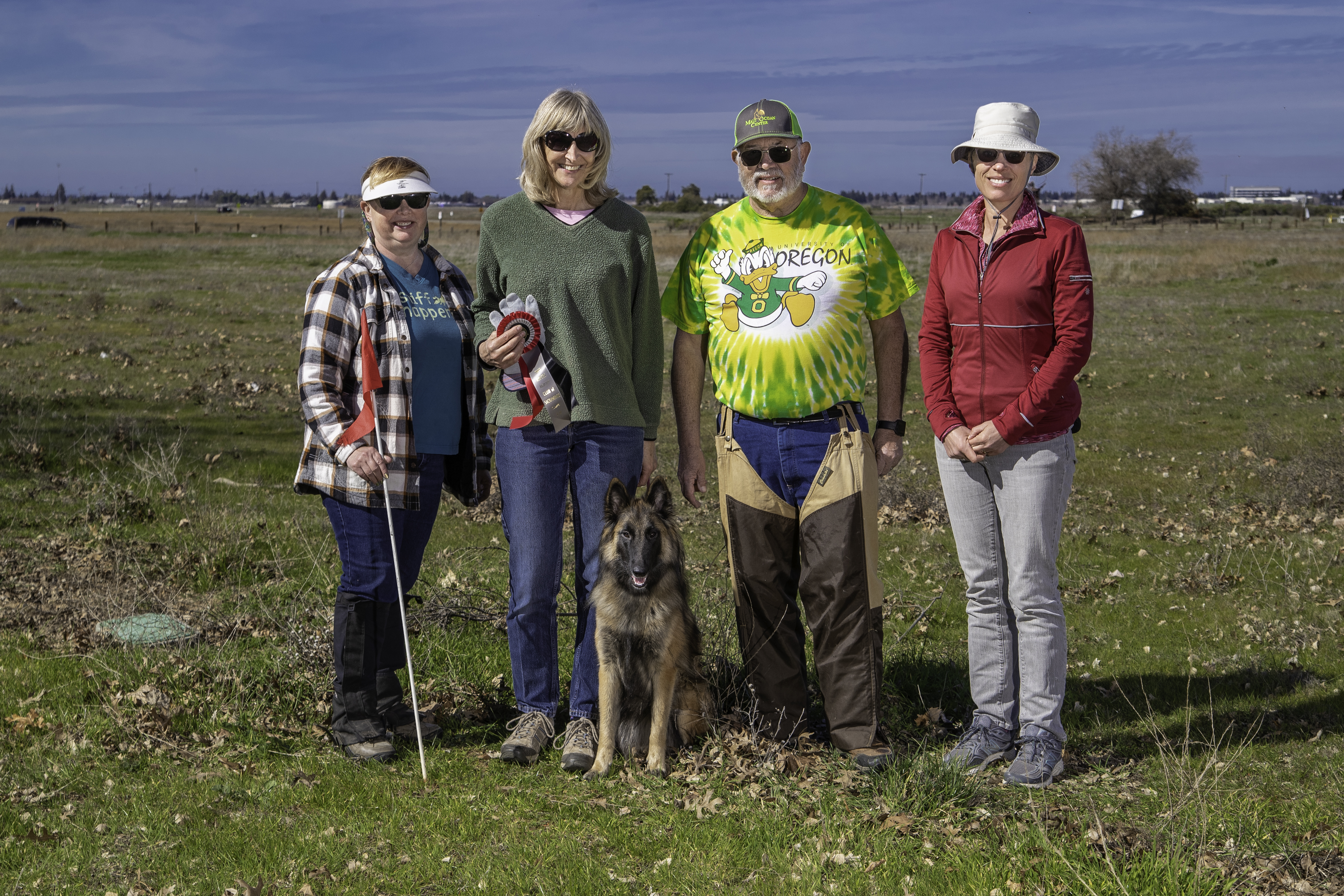 TRACS held its annual TD test on Feb 16, and it was crazy-successful! Our judges were local faves Roy Fair from Oregon and Kamrin MacKnight from the bay area PLUS apprentice Lizanne Kaiser (a local we’re all excited to see training to be a judge!), all so familiar with the Mather test site that they can lay tracks there blindfolded. Weather: a spectacularly clear cool-warming-to-summer day, conditions green but very dry (this being one of the California’s driest Jan-Feb’s on record so far). One of the nice effects of this dryness is no tule fog in the morning – easy crack-o-dawn driving on the roads and no flag/sightlines lost in the mist. The test draw was a luxuriously late 9am. It was suggested we might back this start time back to the more traditional 7am, but I gotta say – it was really nice not having to get up at o’dark-thirty to get there in time! We still ended by noon, temps staying in low 70’s, enjoying a delicious lunch. 5 of the 7 tracks passed! Apologies to the TD test next weekend, for ravaging their entry!!! Track 1 was a GSD bitch who was a steady and honest worker up to the final turn, when she seemed to run out of gas and couldn’t locate the final turn, this was a heartbreaker but a good omen for next time. Track 2 was Terry Southard’s golden, penciled every turn, finished in 4 minutes. Track 3 was Mary Roseberry’s lab, also pretty much penciled every turn, passed in 6 minutes. Track 4 was moi, Karey Krauter’s BC, which the maps show as nailing every turn, taking 11 minutes, but I swear we endlessly circled at every corner and took at least an hour! A very fun track, a bunch of stimulating little short legs and then one long final leg that made the ending exciting and suspenseful, something we all love when we’re tracking! Track 5 was Deborah Crain’s ACD, worked hard and earned that pass, 6 minutes! Track 6 was a bloodhound bitch, their first tracking dog and first test ever, looked very strong on the first three legs but then turned the wrong way and couldn’t recover. This team showed some strong skills that bode well for next time. The alternate track was run by Anita Aborn’s young tervuren, who had an exciting run-away start (not something to brag about but definitely drive that everyone wants!), and then settled into a confident steady track to the end, taking 6 minutes. Congrats to everyone on successes big AND small, and THANK YOU to our volunteers whom we can’t thank enough: Test chair and day-of secretary Sharon Prassa Chief Tracklayer Sue Larson Hospitality Cathy Beam (including her famous fresh blueberry muffins, not to mention the yummy homemade mushroom soup) Tracklayers Meg Azevedo, Debi Best, Paul Brink, and Nancy Strohmaier Driver Dianna Brink Thanks also to Sue Green for being able to generously lodge one of our judges.